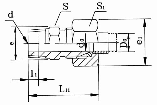 管子外径D0为10mm的A型扩口式锥螺纹直通管接头: