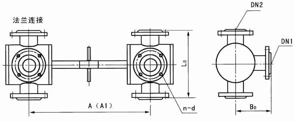 5、三通阀采用钢制焊接结构连续流转换阀。这种阀门在内部结构发生故障或阀门转换期间不会造成油路的中断。外形如图示。