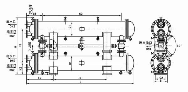 1、表列数据为二流程列管式双联油冷却器,若需要可选用四流程、六流程、裸管或翅片冷却管的冷却器。