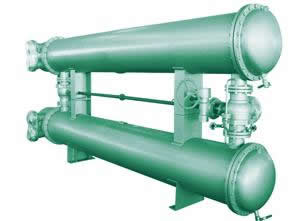 4、根据AP Ⅰ 614 标准,冷却器采用双联结构,由二只相同面积的冷却器和三通阀装置构成,一只工作,一只备用,每个冷却器能承受整个系统的冷却负荷,管板一头固定,一头浮动,可拆卸的管束和水室箱盖,便于运行过程中清洗、检查和维修。冷却器的材质,根据使用场所、水系统条件可有多种选择,水室、壳体、三通阀可选碳钢或全不锈钢,管板可用碳钢、不锈钢或黄铜板;管子材料可选普通黄铜管H68、砷黄铜管HSn70-1A,铝黄铜管HA177-2A,不锈钢管1Cr18Ni9Ti、B10、B30 等。